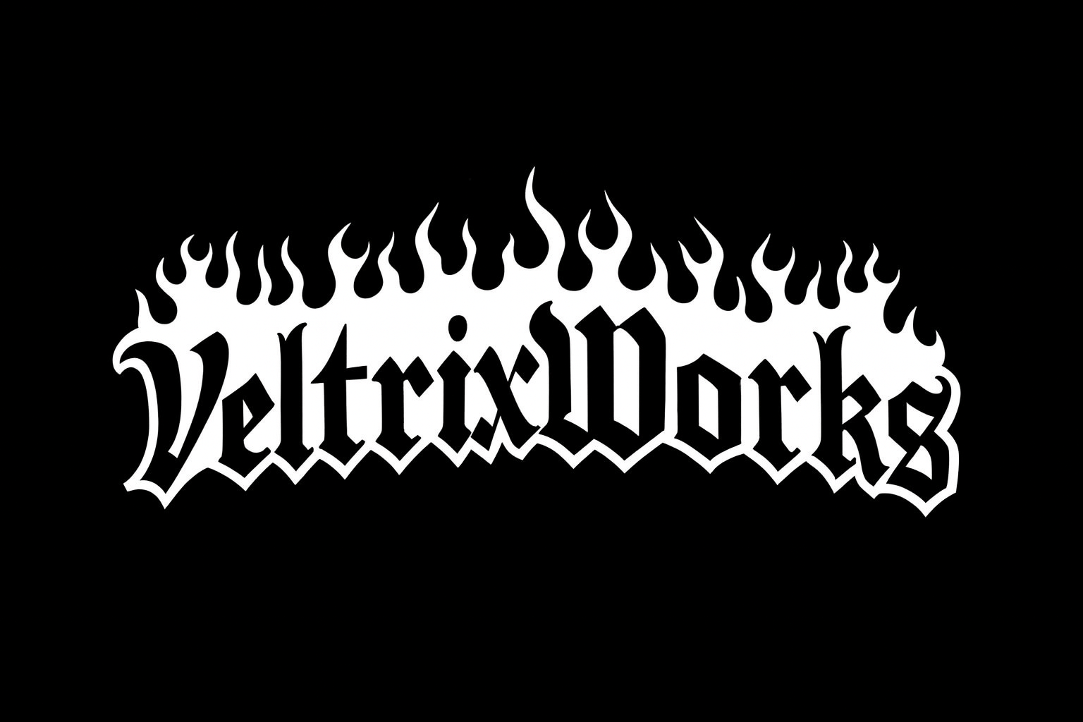 Bring heat to your space with the official VeltrixWorks flame logo design. Bold gothic lettering wrapped in sharp flame detailing makes this piece the perfect statement for fans of raw, underground aesthetics.